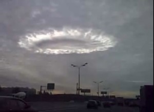 Στις 7 Οκτωβρίου του 2009 εμφανίστηκε στο YouTube το βίντεο από ένα γιγάντιο κυκλικό φωτοστέφανο πάνω από τον ουρανό της Μόσχας. Το βίντεο είχε όλα τα χαρακτηριστικά που απαιτούνταν για να εκκινήσει τη φημολογία σχετικά με UFO. Το βίντεο είναι αρκετά κοκκώδες. Σε κάποιο σημείο ένα σκοτεινό αμβλύ αντικείμενο φαίνεται να εξέχει από τον δακτύλιο. Υπάρχει ακόμα και μια ρωσική ραδιοφωνική εκπομπή στο υπόβαθρο που δίνει την εντύπωση πανικού.Οι ψυχρόαιμοι μετεωρολόγοι γρήγορα ερμήνευσαν την περίεργη αυτή ιστορία: επρόκειτο απλά για μια οπτική πλάνη που προήλθε από το φως του ήλιου το οποίο προσέκρουε σε ένα σύννεφο το οποίο είχε διαταραχθεί και σχηματοποιηθεί κατάλληλα λόγω του αέρα ή κάποιου αεροπλάνου που είχε περάσει από εκεί. Ή αλλιώς, δεν ήταν τίποτε περισσότερο από την αντανάκλαση του φωτός σε ένα σύννεφο με τη μορφή ντόνατ. Τέτοιες μορφές δημιουργούνται σε υψηλά σύννεφα που βρίσκονται σε ύψος 6 έως 15 χιλιόμετρα πάνω από την επιφάνεια της θάλασσας του τύπου 'θύσανοι' και 'θυσανοστρώματα', τα οποία συχνά αποτελούνται από κρυστάλλους πάγου και υπέρ-ψυχρα σταγονίδια νερού, δηλαδή νερό που βρίσκεται κάτω από τη θερμοκρασία πήξεως αλλά που είναι ακόμα υγρό. Οι φυσικές ιδιότητες που διατηρούν τη μορφή αυτών των σύννεφων είναι ευαίσθητες και όταν διαταράσσονται από ένα αεριωθούμενο αεροπλάνο ή από τον αέρα, τα σταγονίδια μπορούν να παγώσουν αστραπιαία ή να εξατμιστούν. Στην περίπτωση της εξάτμισης δημιουργείται το σχήμα τρύπας.